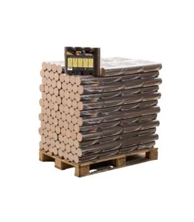 Die Lieferung erfolgt auf einer stabilen Palette mit 96 praktischen Bündeln zu je 12 Briketts – das entspricht einem Gesamtgewicht von 960 kg. Dank der stapelbaren Verpackung ist eine einfache Handhabung und eine platzoptimierte Lagerung garantiert.